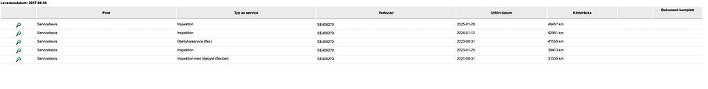 Kompletterande uppgifter om bilen.