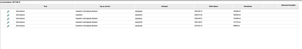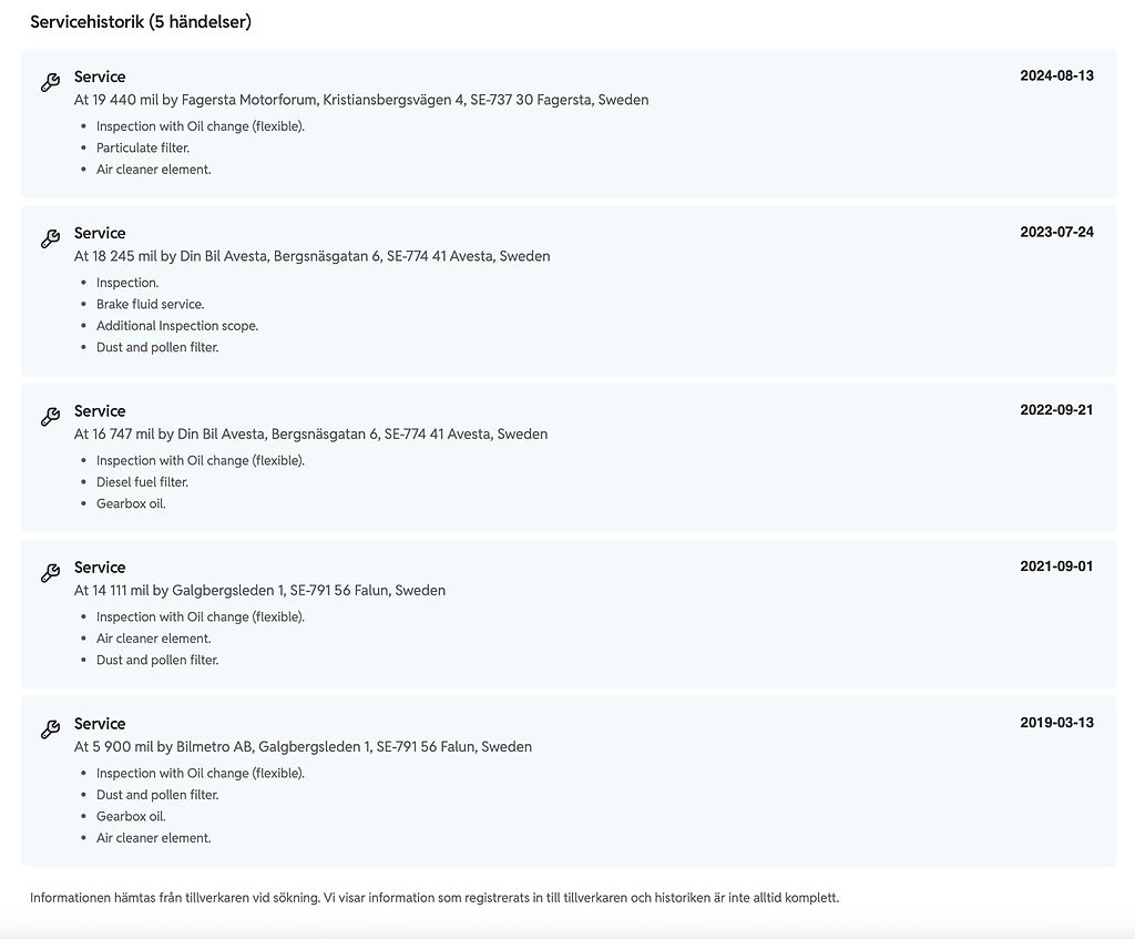 Kompletterande uppgifter om bilen.