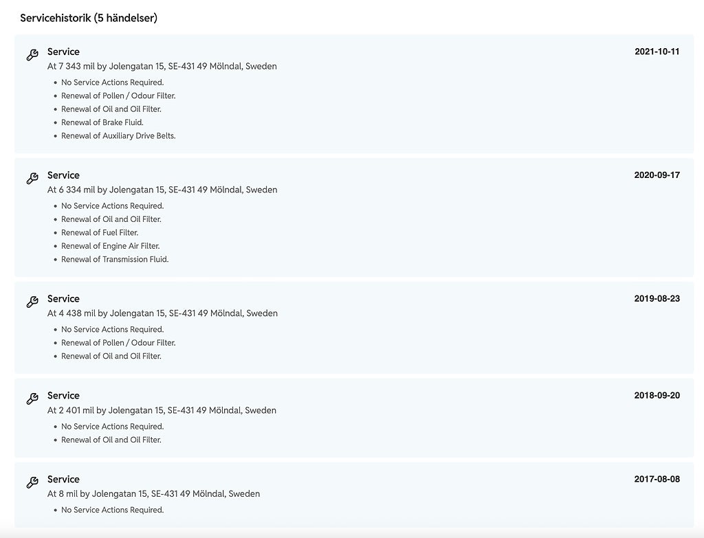 Kompletterande uppgifter om bilen.