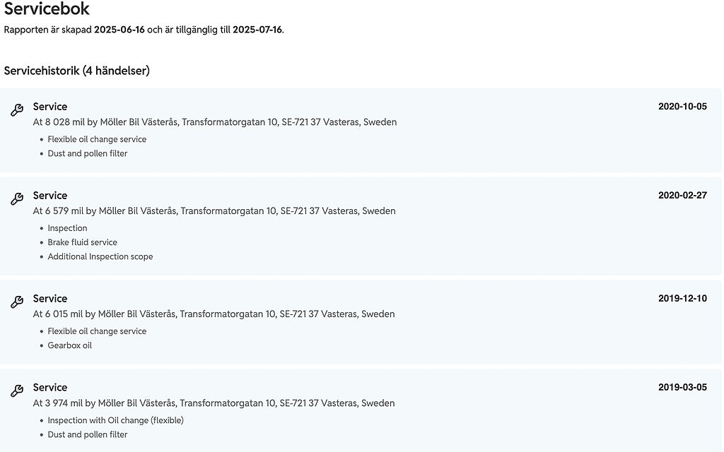 Kompletterande uppgifter om bilen.